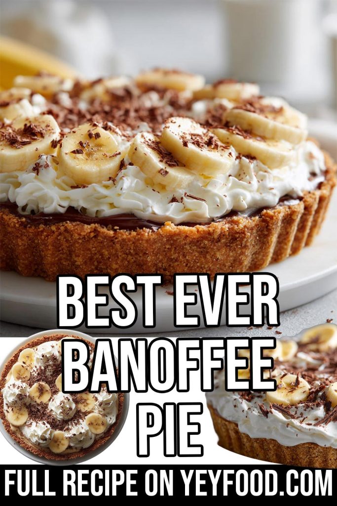 Best Ever Banoffee Pie recipe with dulce de leche, bananas and whipped cream. A no bake dessert that feels rich sweet and simple to prepare.