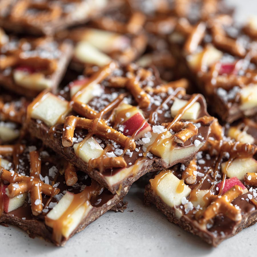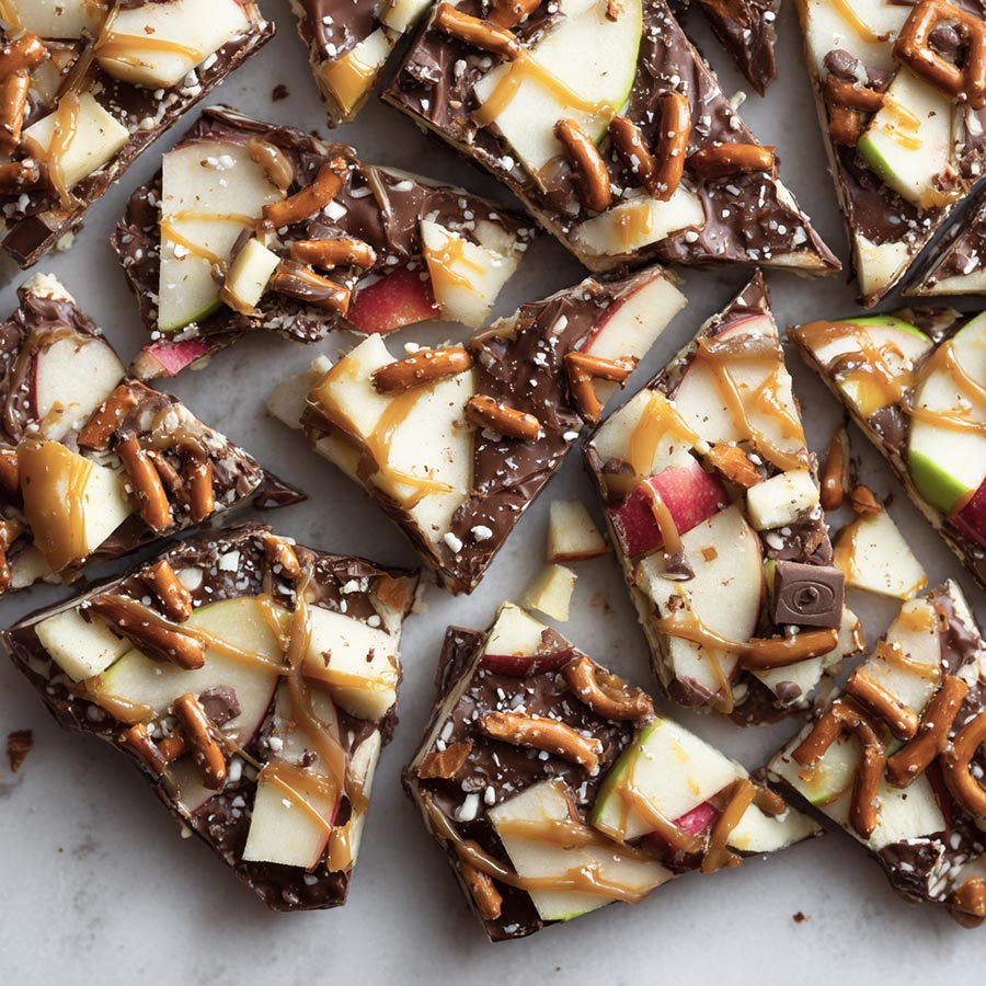 All the flavors of caramel apples in an easy-to-make chocolate bark. Sweet, crunchy, and perfect for fall snacking or gifting.