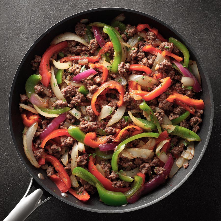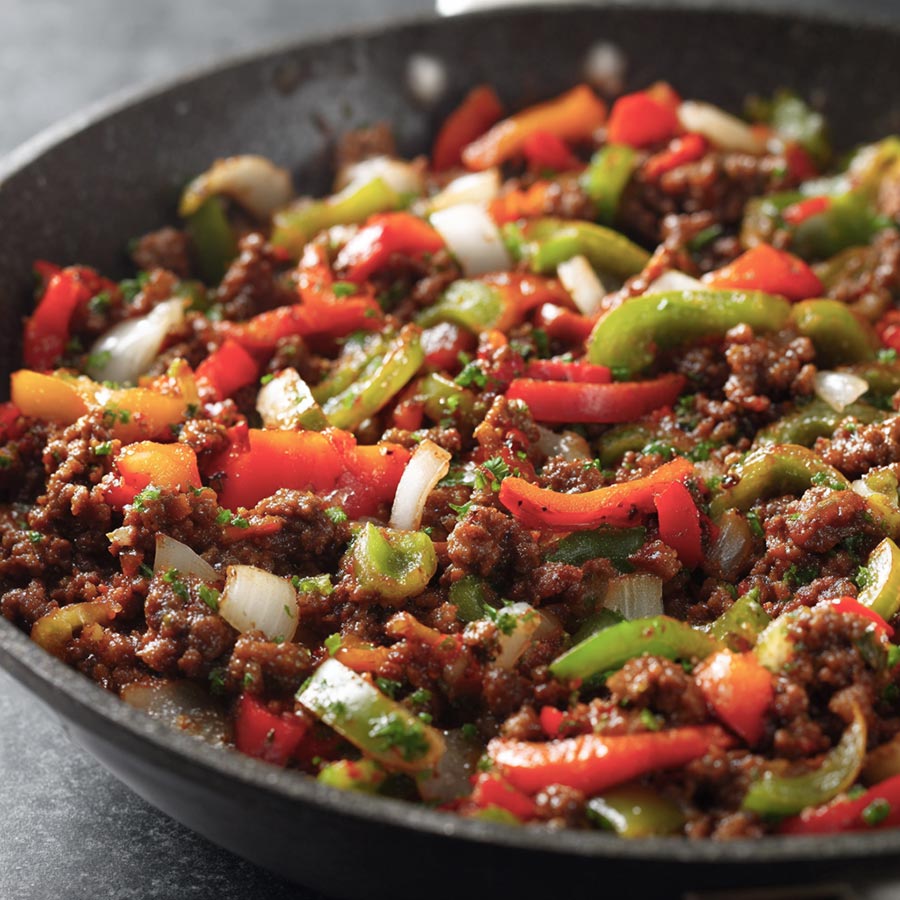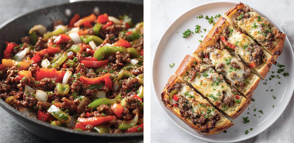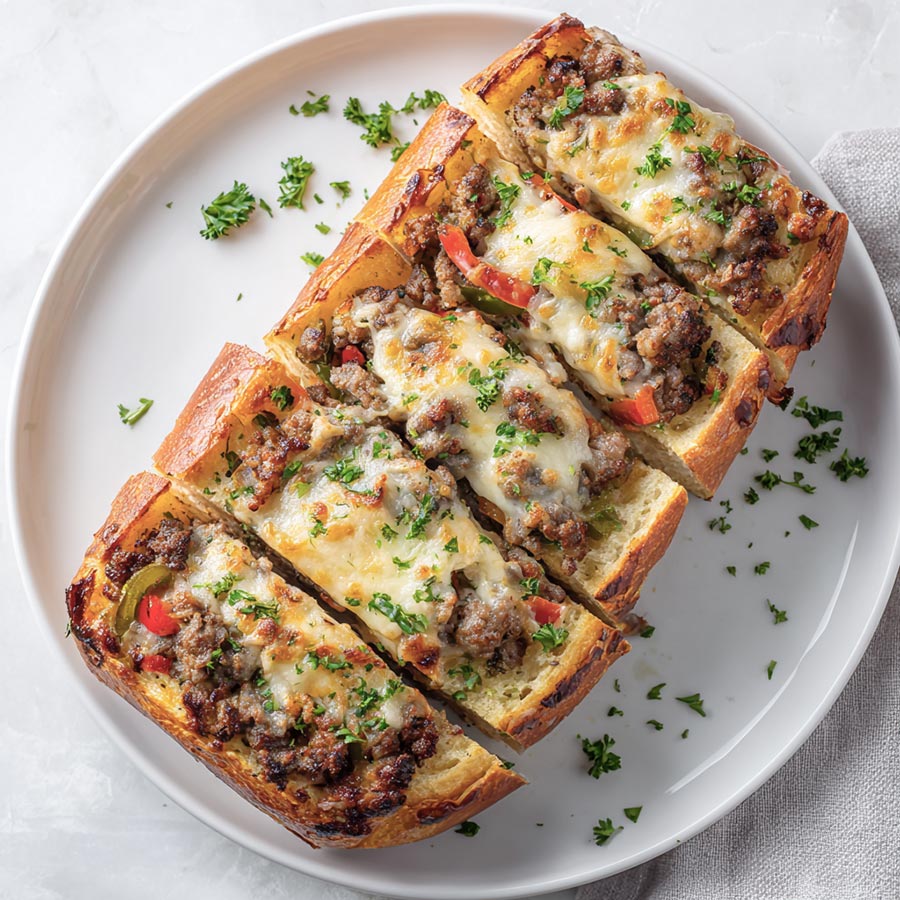 What I like about this recipe is how everything stays contained. The beef cooks quickly, the peppers soften nicely, and the cheese melts into the bread. Each slice holds together well which makes serving easy.