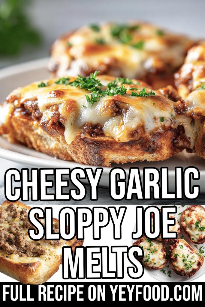 Make these cheesy garlic sloppy joe melts for a quick and comforting dinner. Toasted bread with garlic butter, rich meat, and melted cheese create a family favorite in under forty minutes.