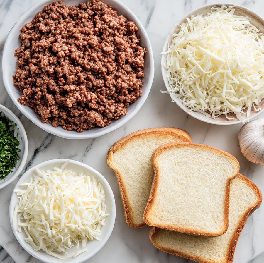 What You Need To Make Cheesy Garlic Sloppy Joe Melts