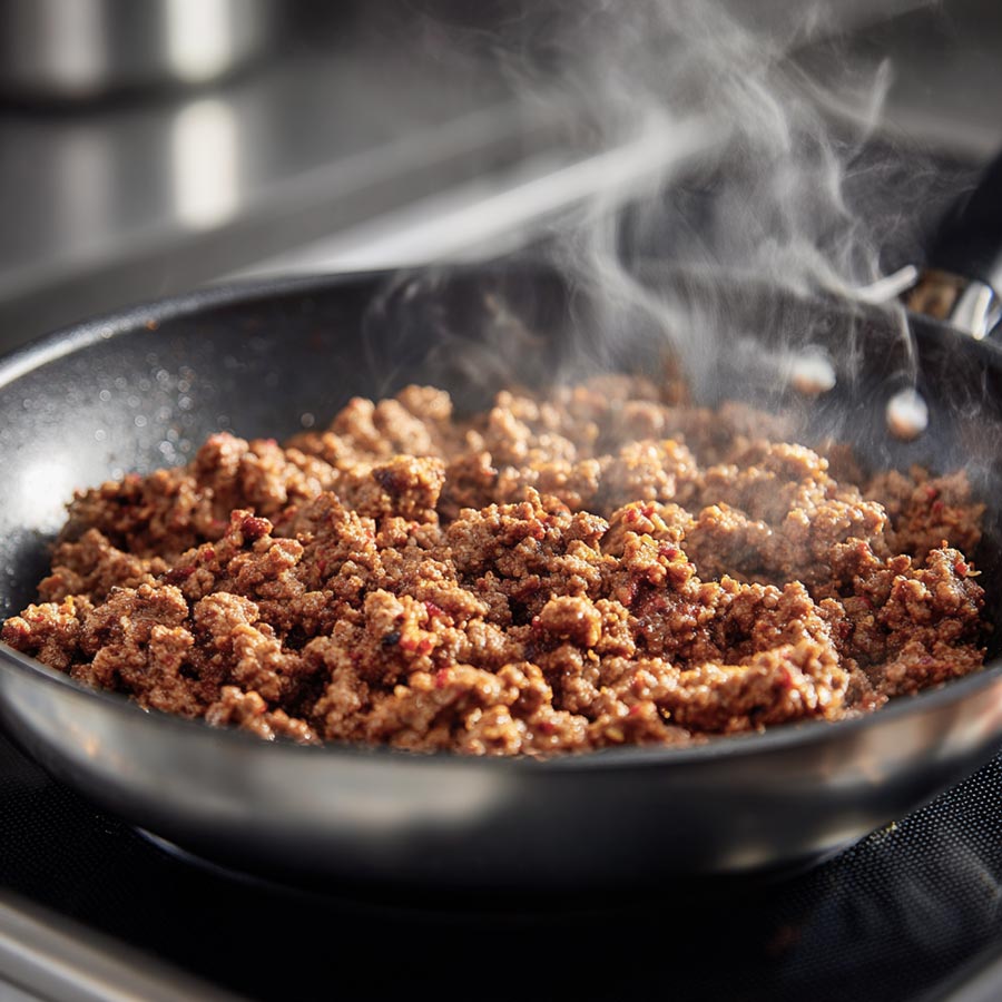 Lean beef works best so the sauce stays smooth. If you use regular beef, drain the excess grease.