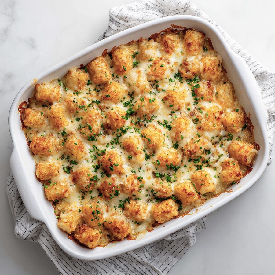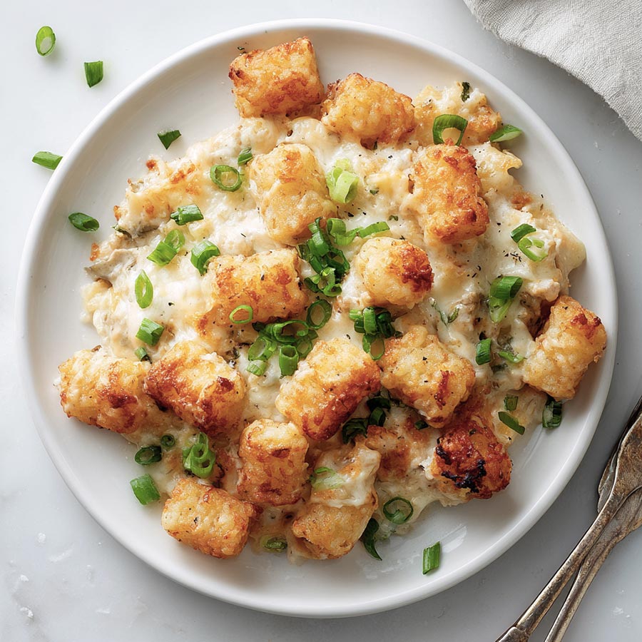 What I like about this dish is how familiar it feels. Creamy sauce, tender chicken, crisp tater tots, and a golden top come together in a way that makes sense. It feels hearty without being complicated and works well for evenings when time feels short.