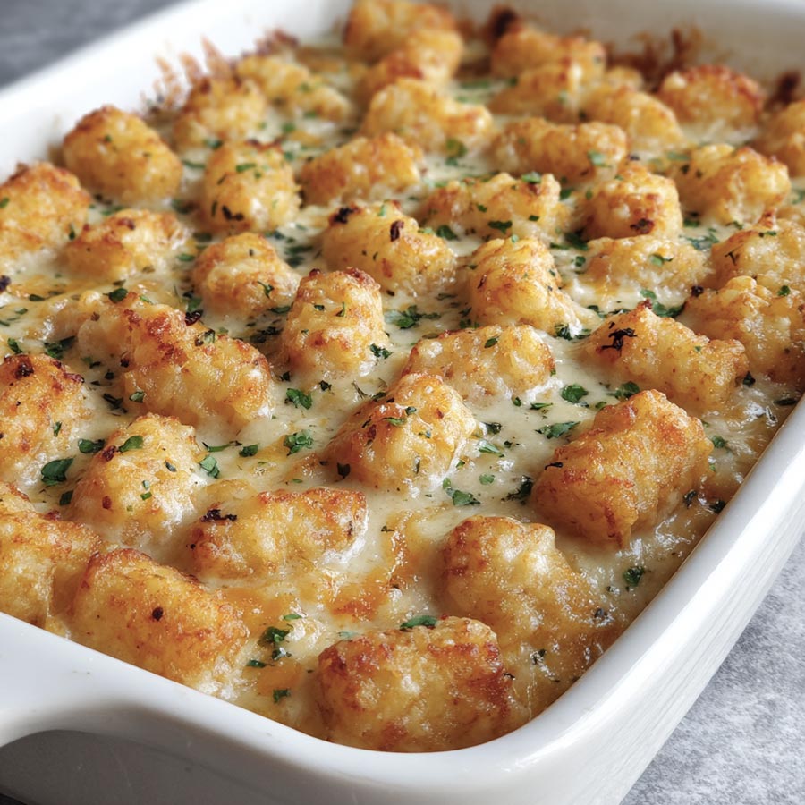 Chicken Alfredo Tater Tot Casserole