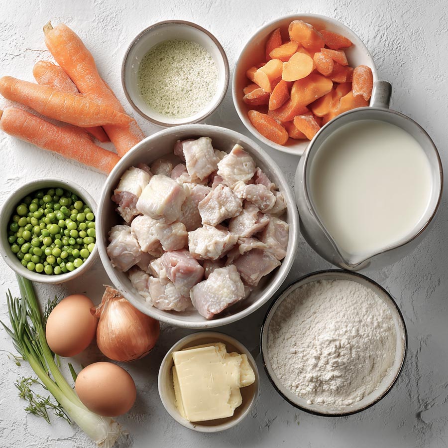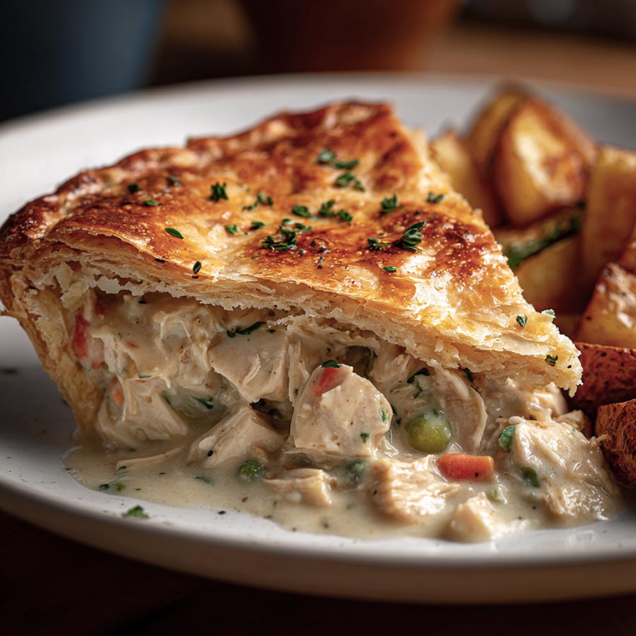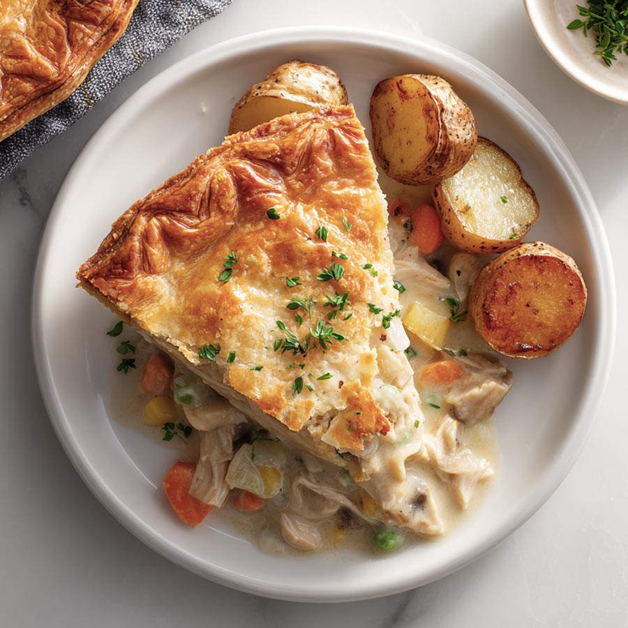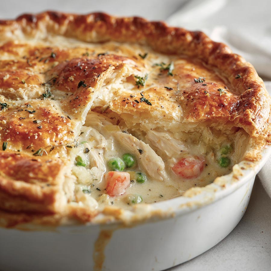 A creamy, hearty chicken pot pie with tender vegetables and a flaky golden crust. Perfect for cozy family dinners.