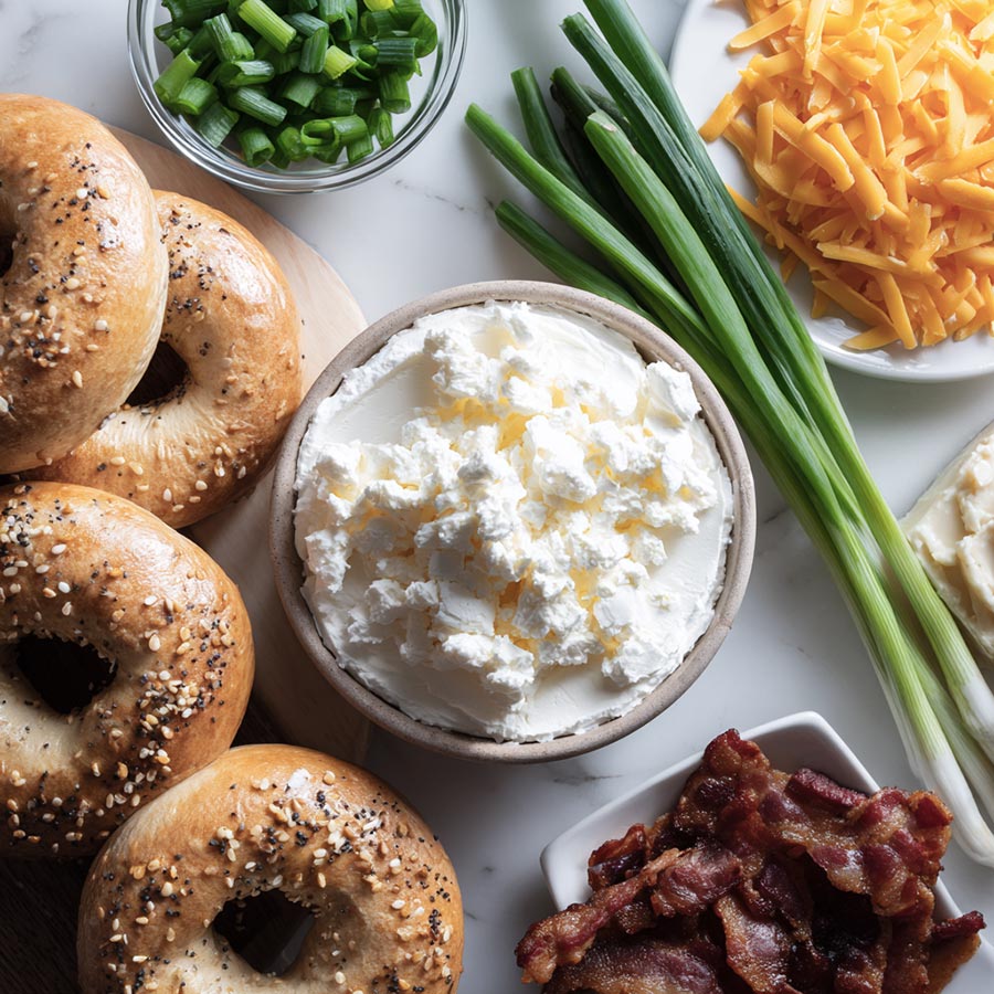 What You Need To Make Creamy Bacon Cheddar Bagels