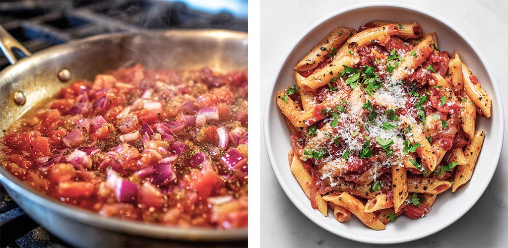 The sauce comes together fast but tastes like it has been simmering for much longer. I enjoy how the red onions soften into the tomatoes and give the dish a sweet note that balances the spice. My family liked how each bite was full of flavor and the pasta held the sauce well. It was one of those meals where the table grew quiet in the best possible way.