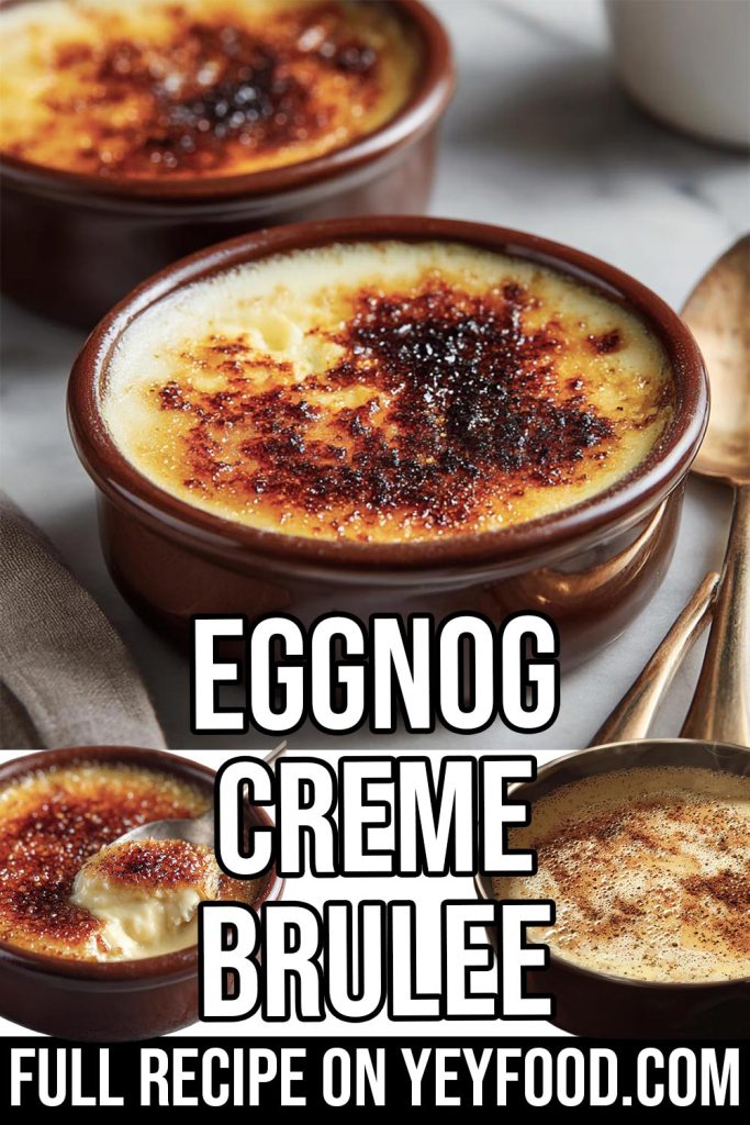 Eggnog creme brulee recipe with creamy custard and crisp caramelized sugar topping. Easy make ahead holiday dessert.