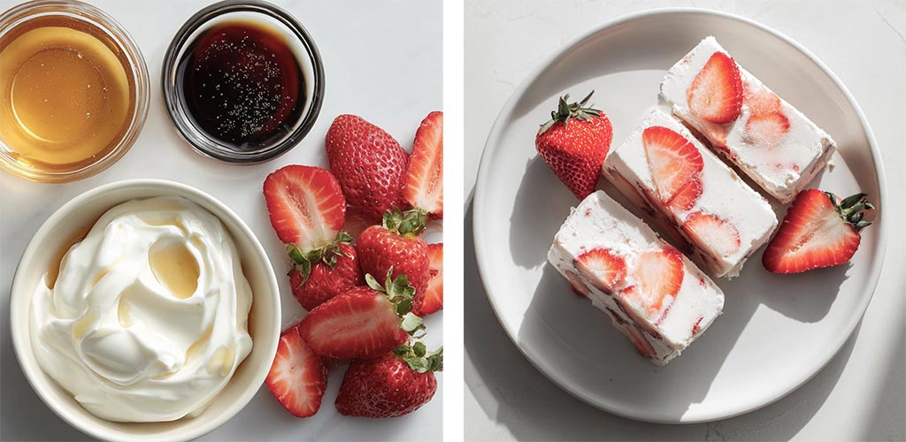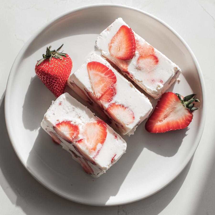 Frozen yogurt bars with strawberries and honey. A simple freezer dessert with clean flavor and smooth texture.