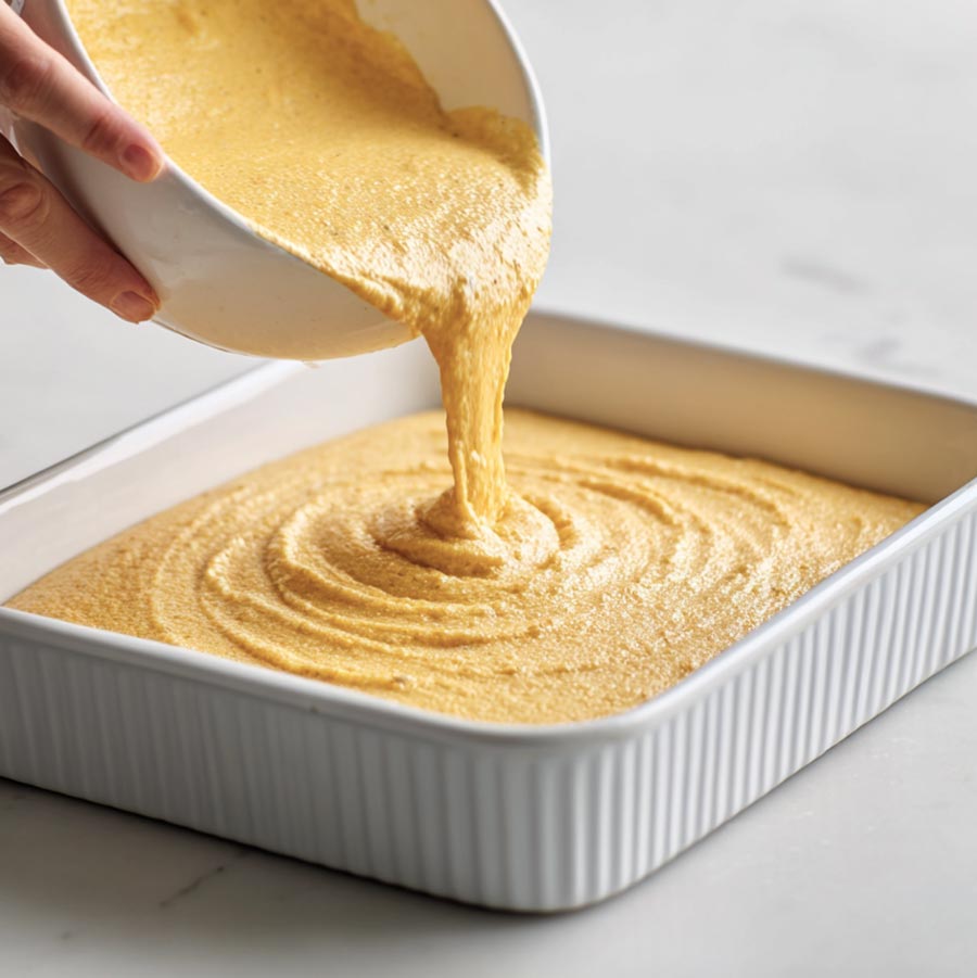 Pour batter into prepared dish and bake for 30 to 35 minutes until golden brown.