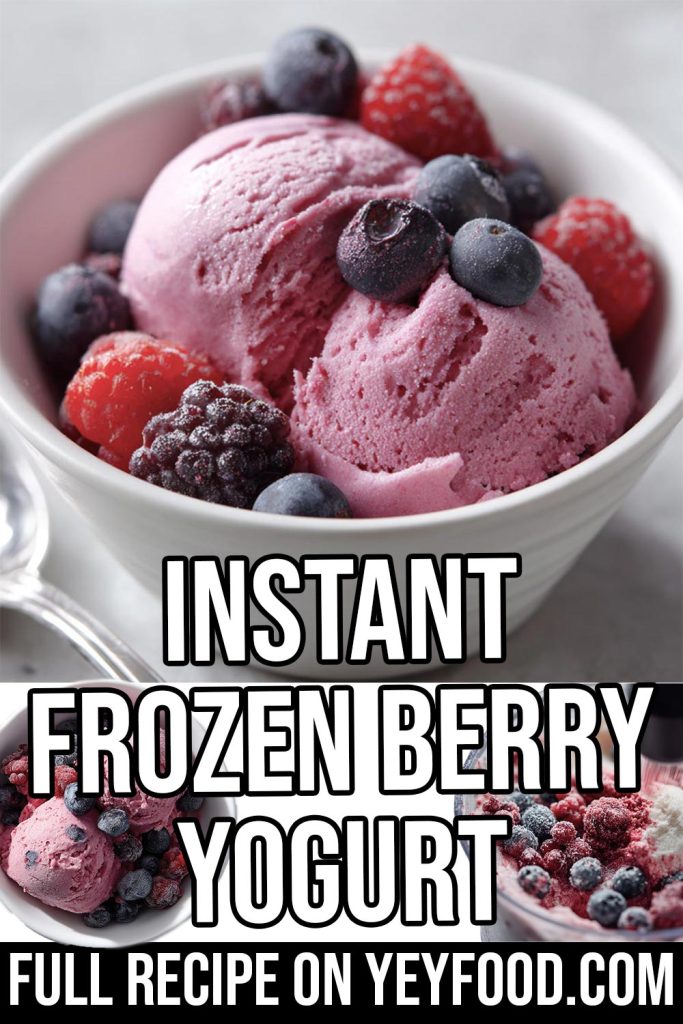 Instant frozen berry yogurt with frozen berries and Greek yogurt. Easy no cook dessert with smooth texture and fresh flavor.