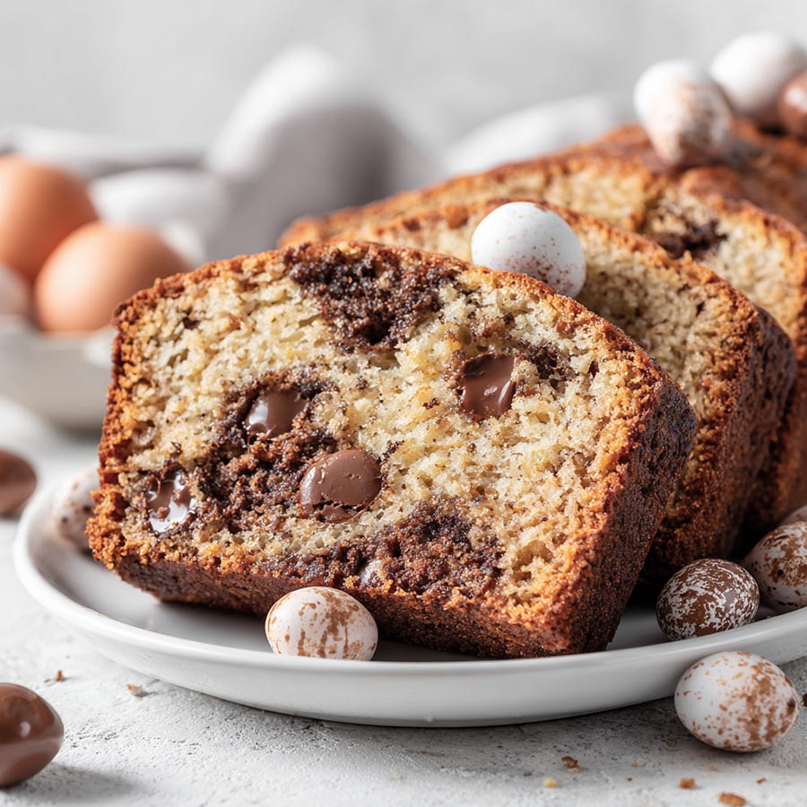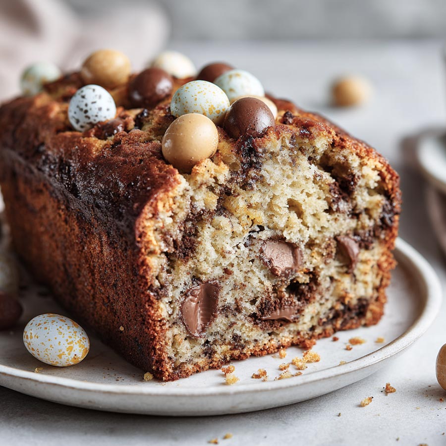 What I like most about this recipe is how soft and tender the crumb turns out every time. The bananas keep the loaf moist, while the mini eggs melt slightly and create pockets of chocolate throughout. Each slice feels comforting and familiar, like the kind of bake you grew up with. It is simple enough for a weekday and still special enough for company.