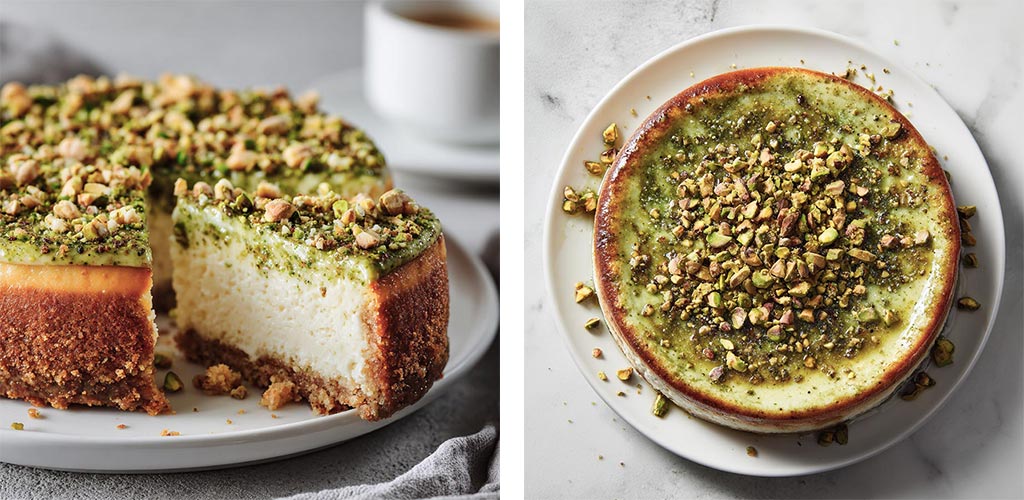 - Spread pistachio topping over the set cheesecake.