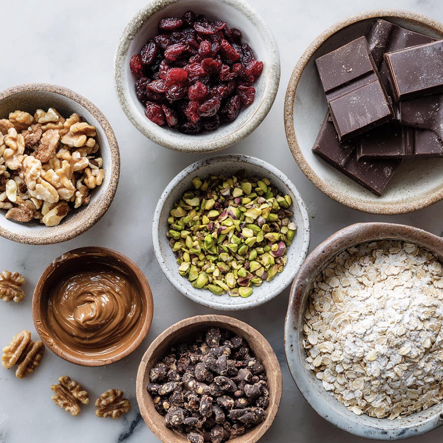- Add oats, almond butter, honey, coconut oil, vanilla, and salt to a bowl.