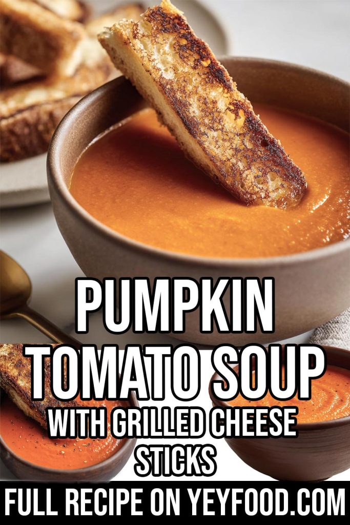 Pumpkin Tomato Soup with Grilled Cheese Sticks