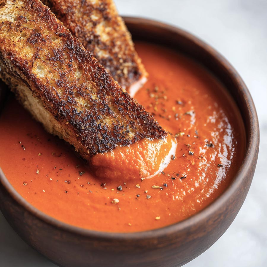 A creamy tomato and pumpkin soup paired with crispy grilled cheese sticks. Comforting, simple, and ready in under 40 minutes.