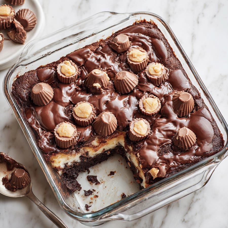 Peanut butter and chocolate have always been a winning combination in our home, so when I came across the idea of a Reese’s Earthquake Cake, I knew I had to give it a Reese’s twist. The mix of creamy peanut butter filling, rich chocolate cake, and those little peanut butter cups baked right in makes this dessert one of the most addictive things to come out of my oven.