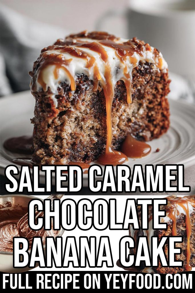What makes this cake stand out is the balance of flavors. The bananas keep the crumb soft and moist, while the chocolate gives it depth. Then comes the salted caramel, which melts into the layers and adds just enough sweetness. The frosting brings everything together with a smooth finish that feels like a bakery treat.