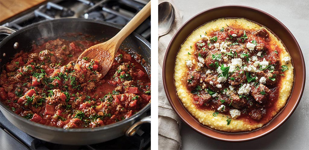 How to make Sausage Ragu with Creamy Goat Cheese Polenta