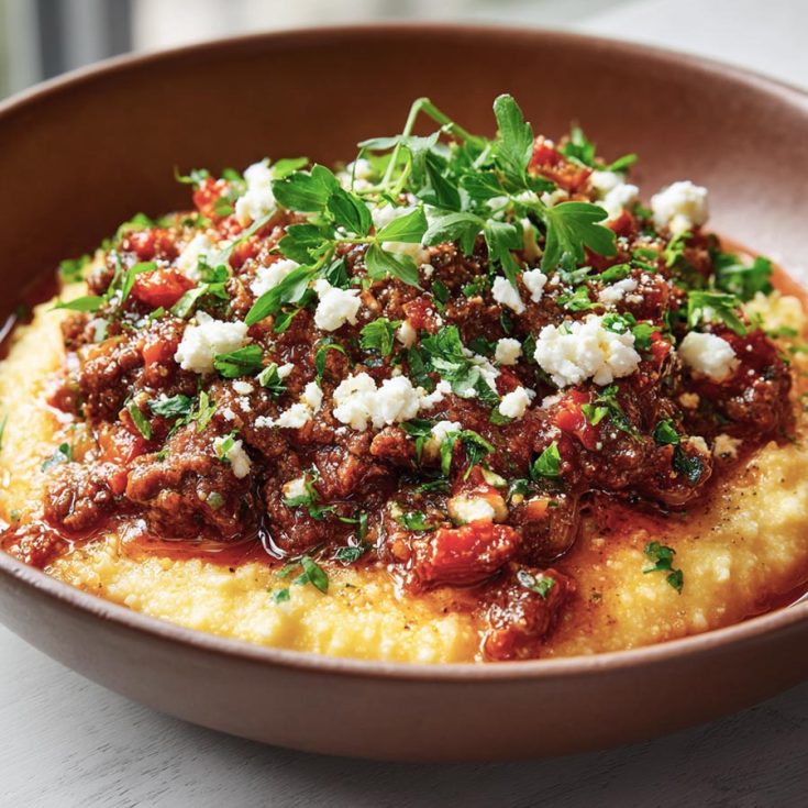 What I enjoy most about this recipe is how the soft polenta balances the rich sausage ragu. The goat cheese melts right in and gives the base a smooth, gentle tang. Each spoonful feels warm and comforting, and it fills the kitchen with the kind of aroma that makes people hover near the stove. It is the type of meal that feels like you spent hours on it, even though it comes together in a simple, steady rhythm.