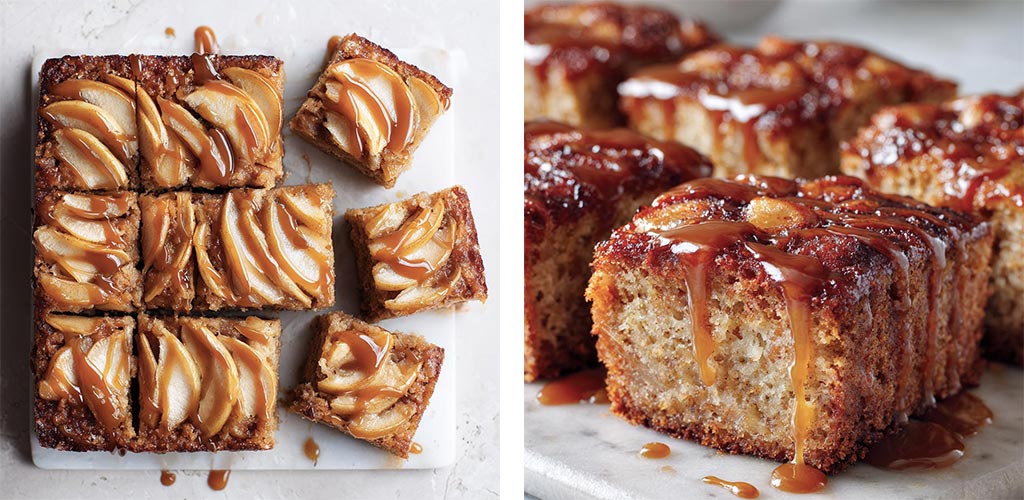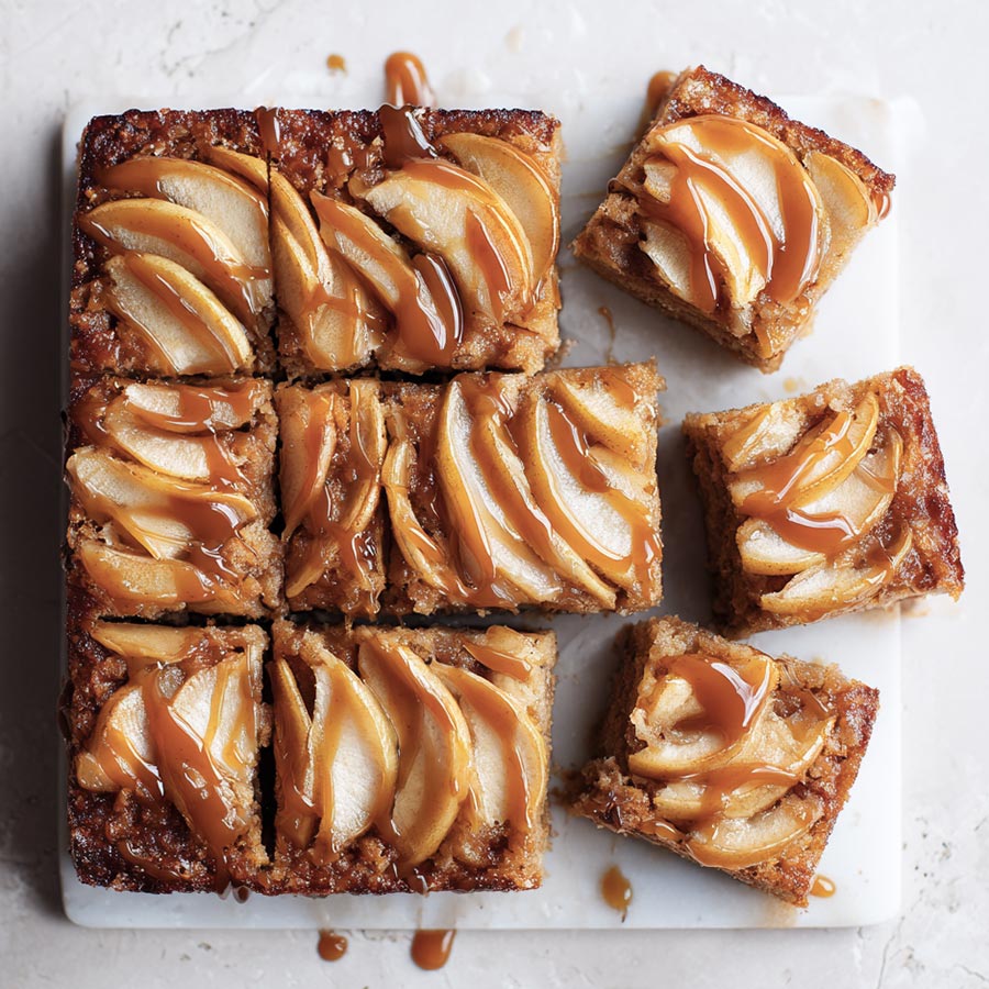 Moist spiced cake topped with baked apples and finished with a rich toffee sauce. A cozy dessert perfect for fall gatherings.