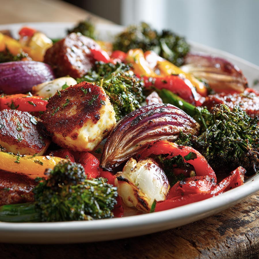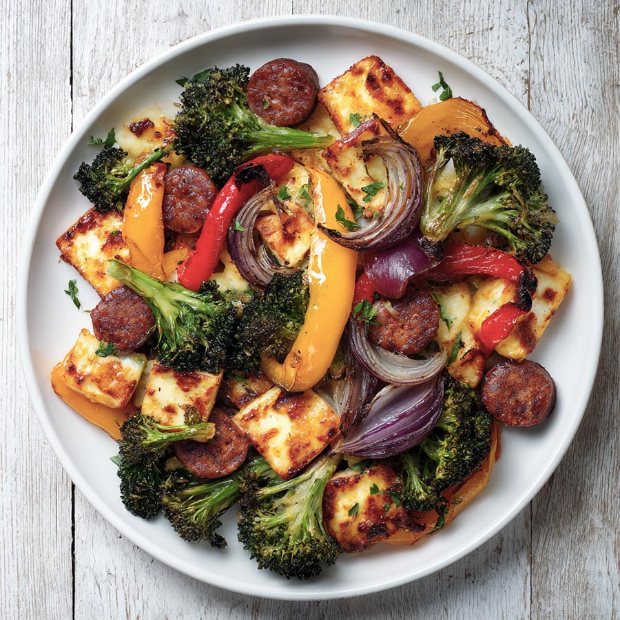 What I like most about this recipe is how the flavors blend while it cooks. The sausage juices coat the vegetables, and the halloumi adds a salty bite in every forkful. The edges turn slightly crisp while the centers stay tender. It is the sort of meal which smells good long before it reaches the table.