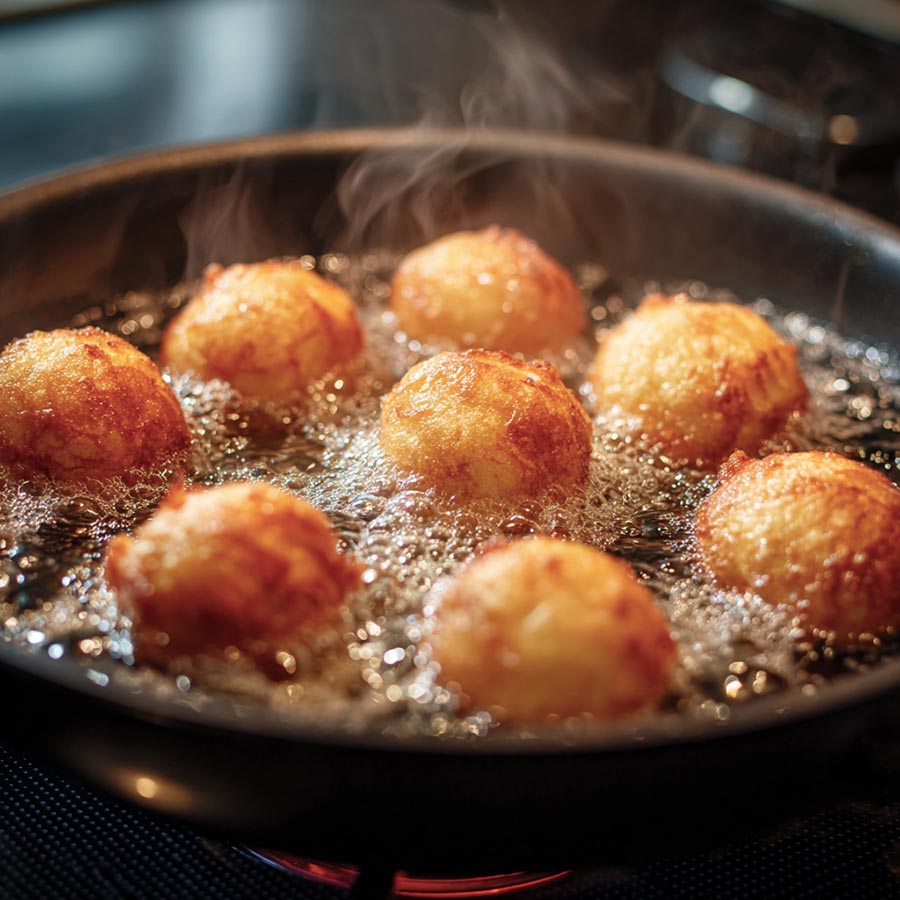 Heat oil in a deep pot over medium heat. You want enough to fully surround each ball of dough.