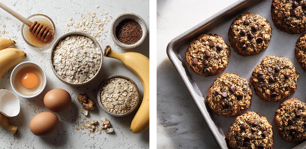 Breakfast cookies made with oats bananas nut butter seeds and maple syrup. Soft filling and balanced flavor for steady mornings.