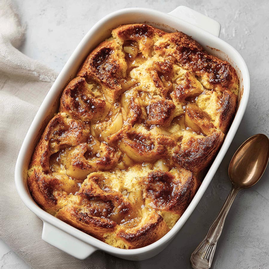 A warm, comforting dessert made with buttery bread, caramelized apples, and rich toffee custard. Easy to prepare and perfect for family gatherings or cozy evenings.