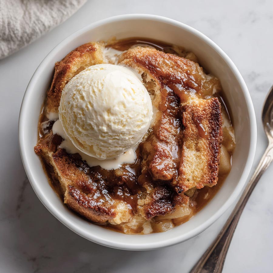 What I love most about this pudding is how it transforms everyday ingredients into something that feels special. The bread soaks up the toffee sauce and bakes into a soft, creamy base, while the apples caramelize on top. A scoop of vanilla ice cream or a drizzle of cream over a warm slice takes it over the top.