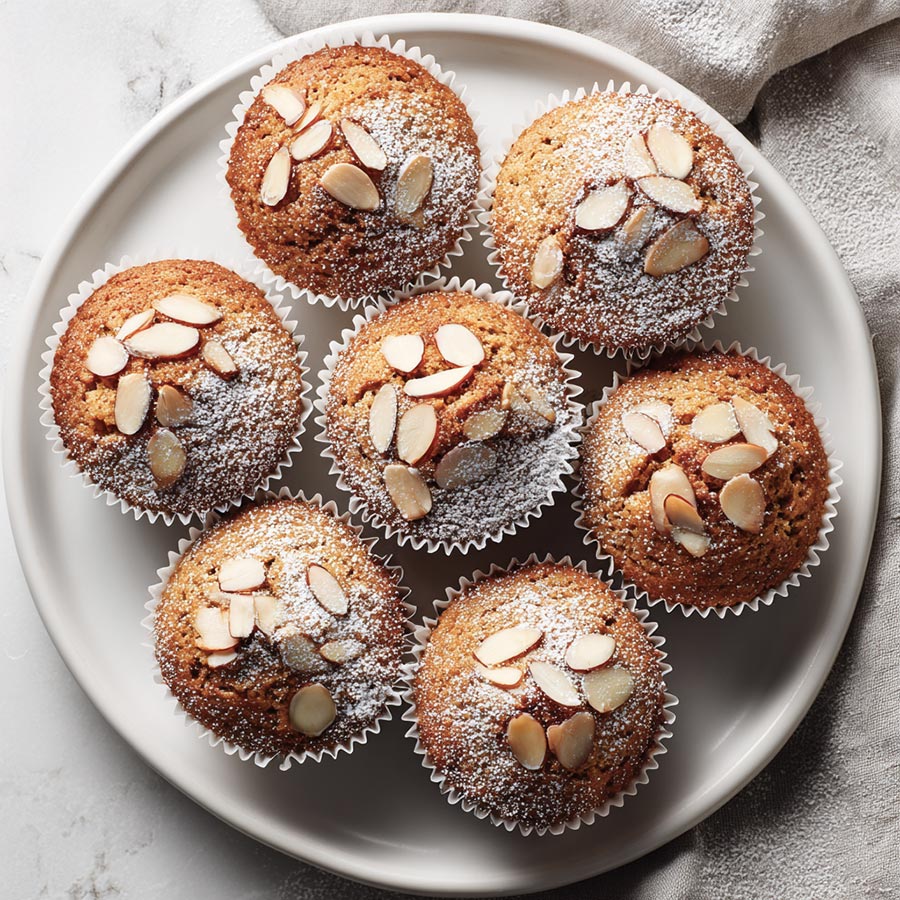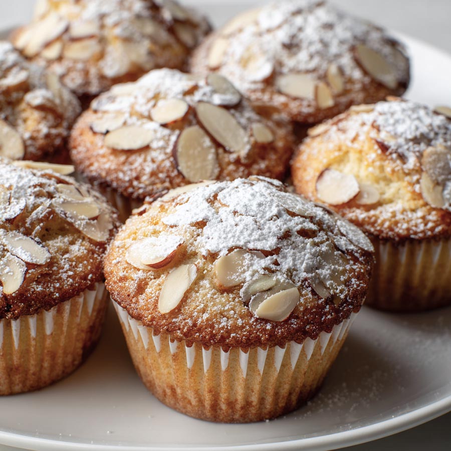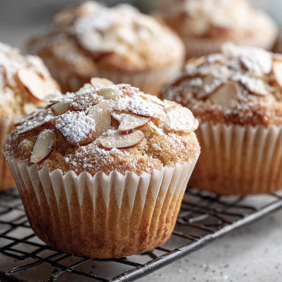 What I like most is the texture. The muffin stays soft and moist while the center holds a gentle almond richness. The sliced almonds on top add crunch without overpowering the bake. This recipe feels thoughtful and balanced, the kind you return to because it works every time.