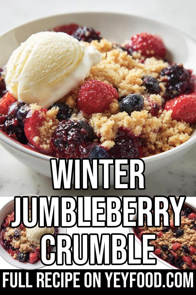 Winter Jumbleberry Crumble recipe with mixed berries and oat topping. Easy homemade dessert with balanced sweetness and classic comfort flavor.